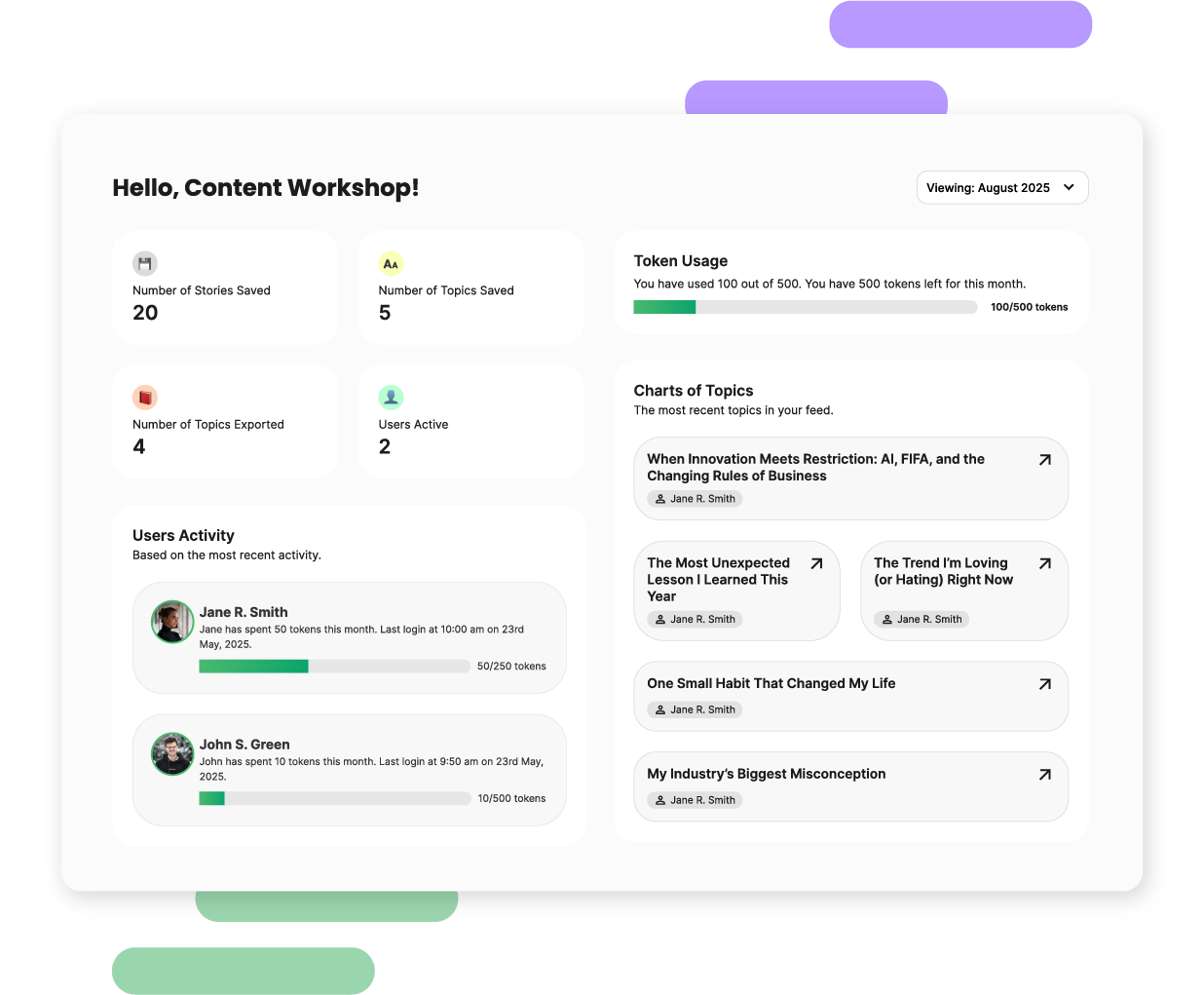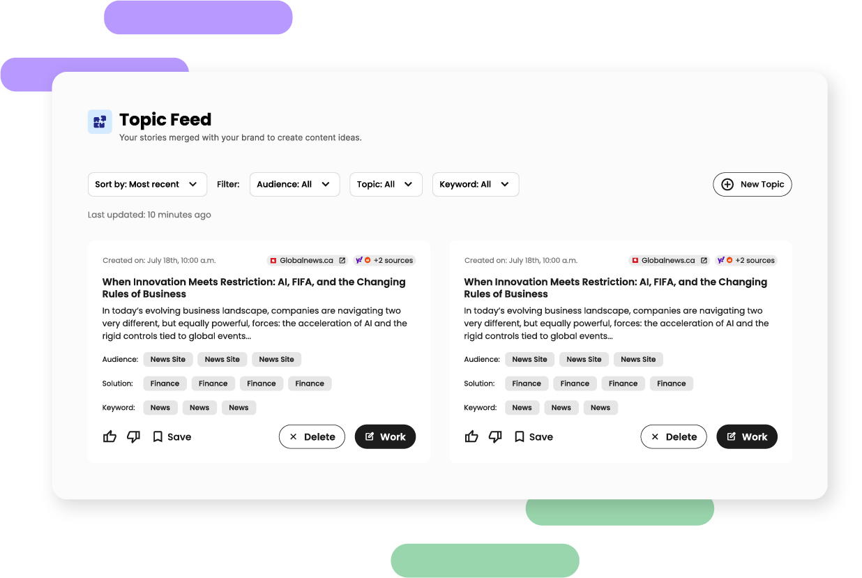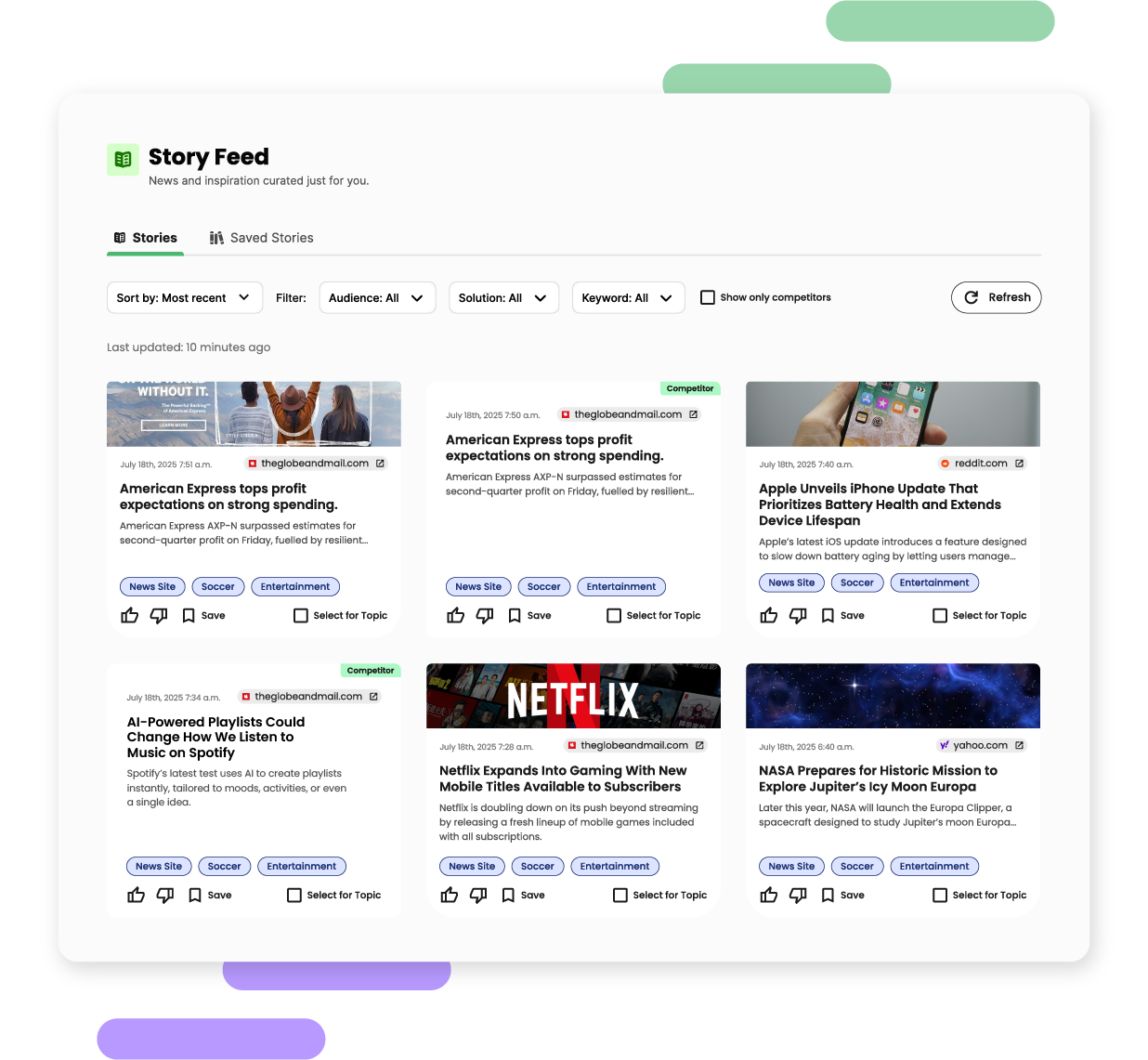 Stories merge with your brand’s voice to create relevant, timely content ideas.