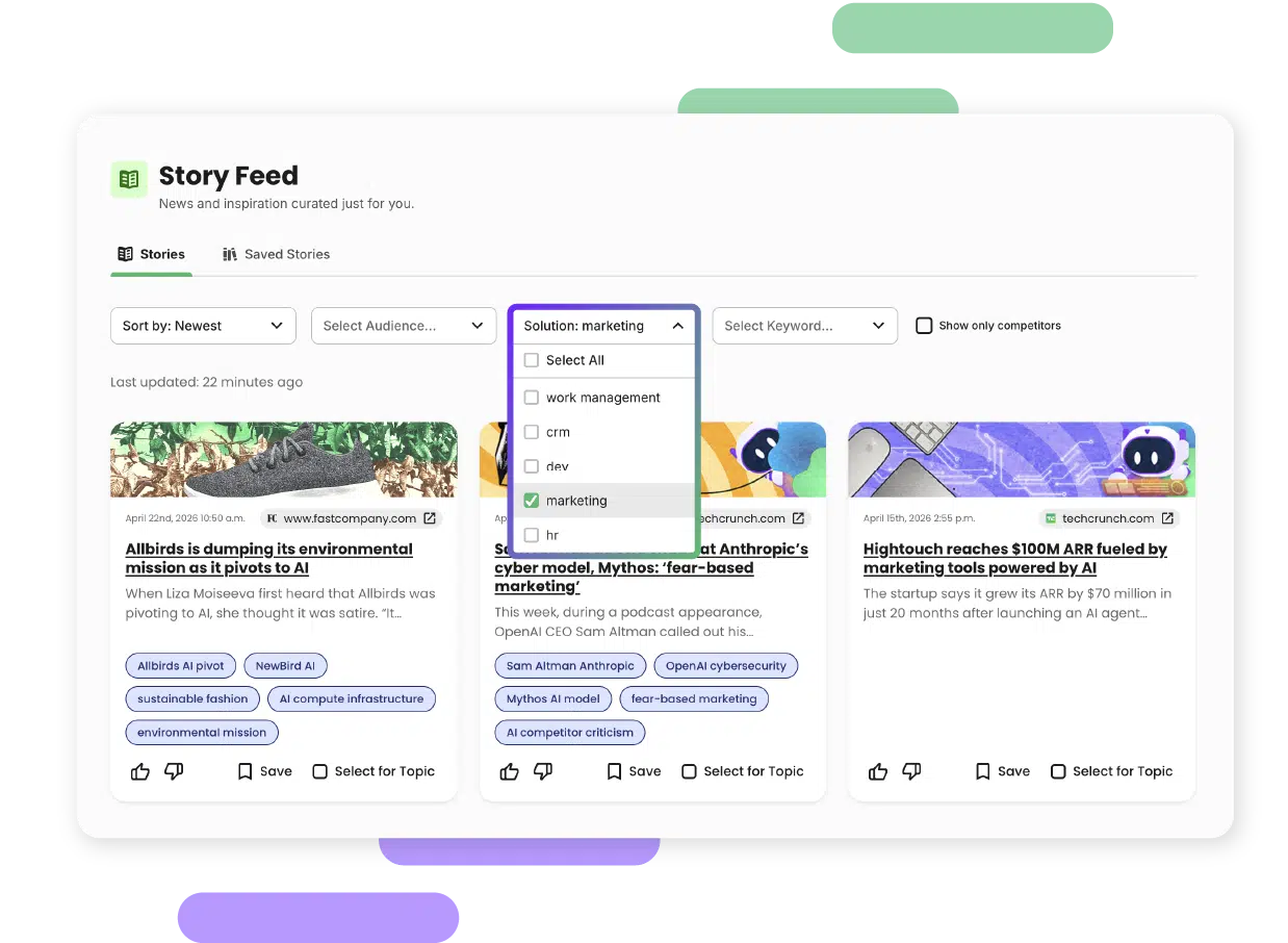 Chatter is a content intelligence platform that feeds your team real, relevant stories, helping you find something worth saying, fast.
