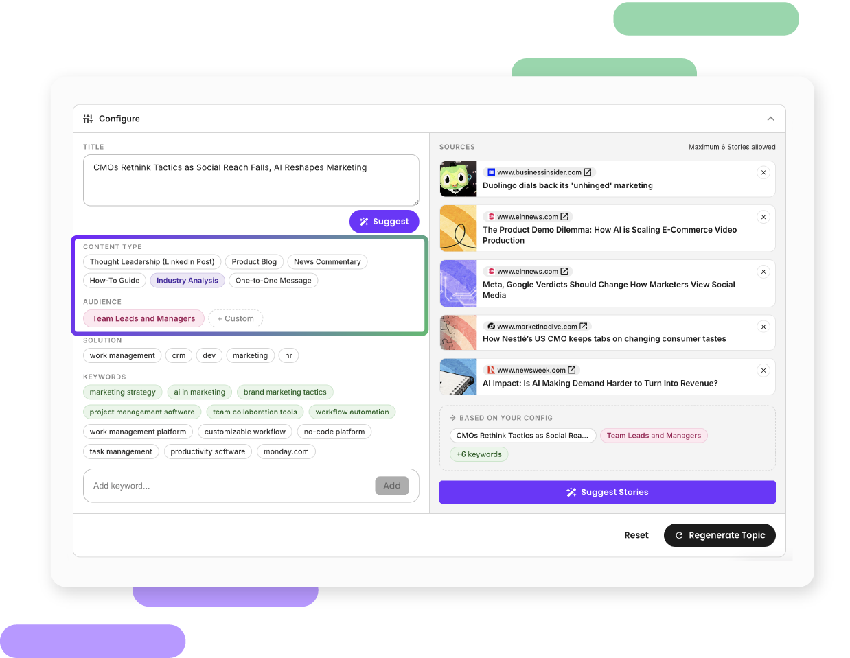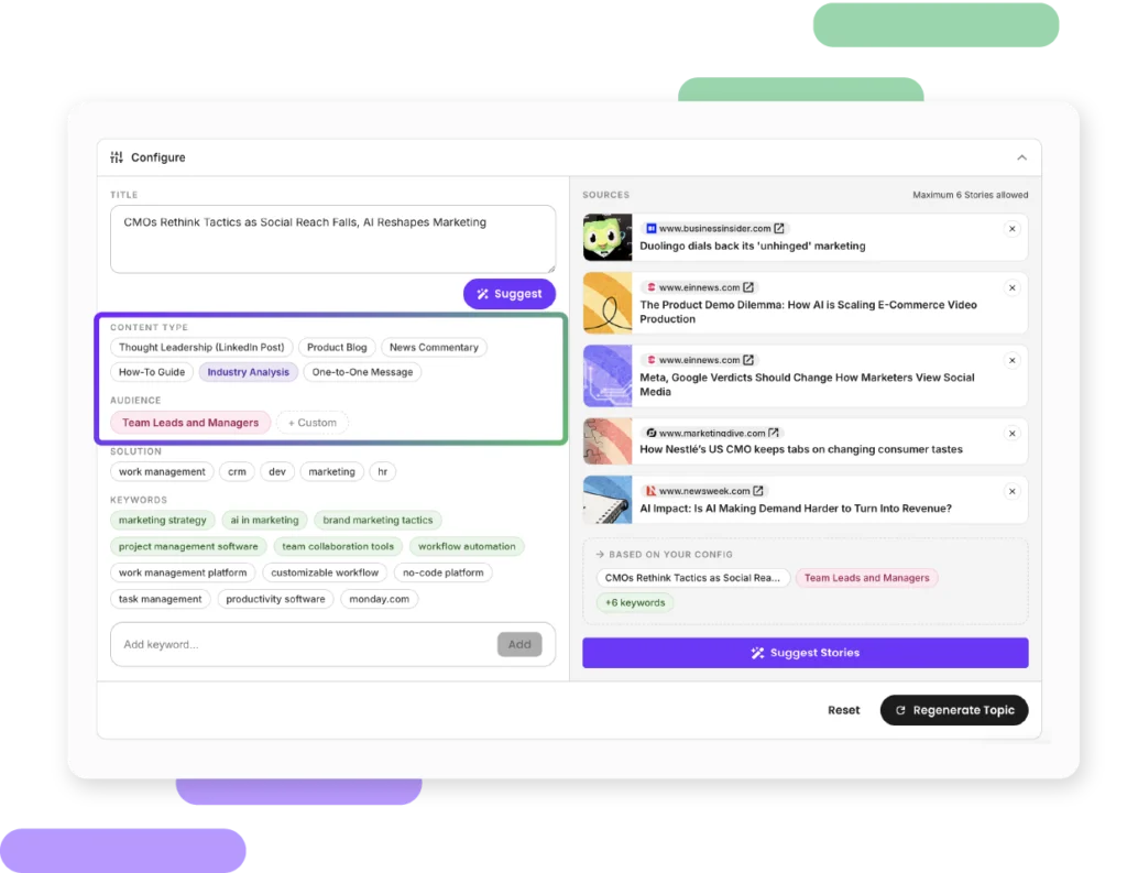 - Topic generation with AI editing